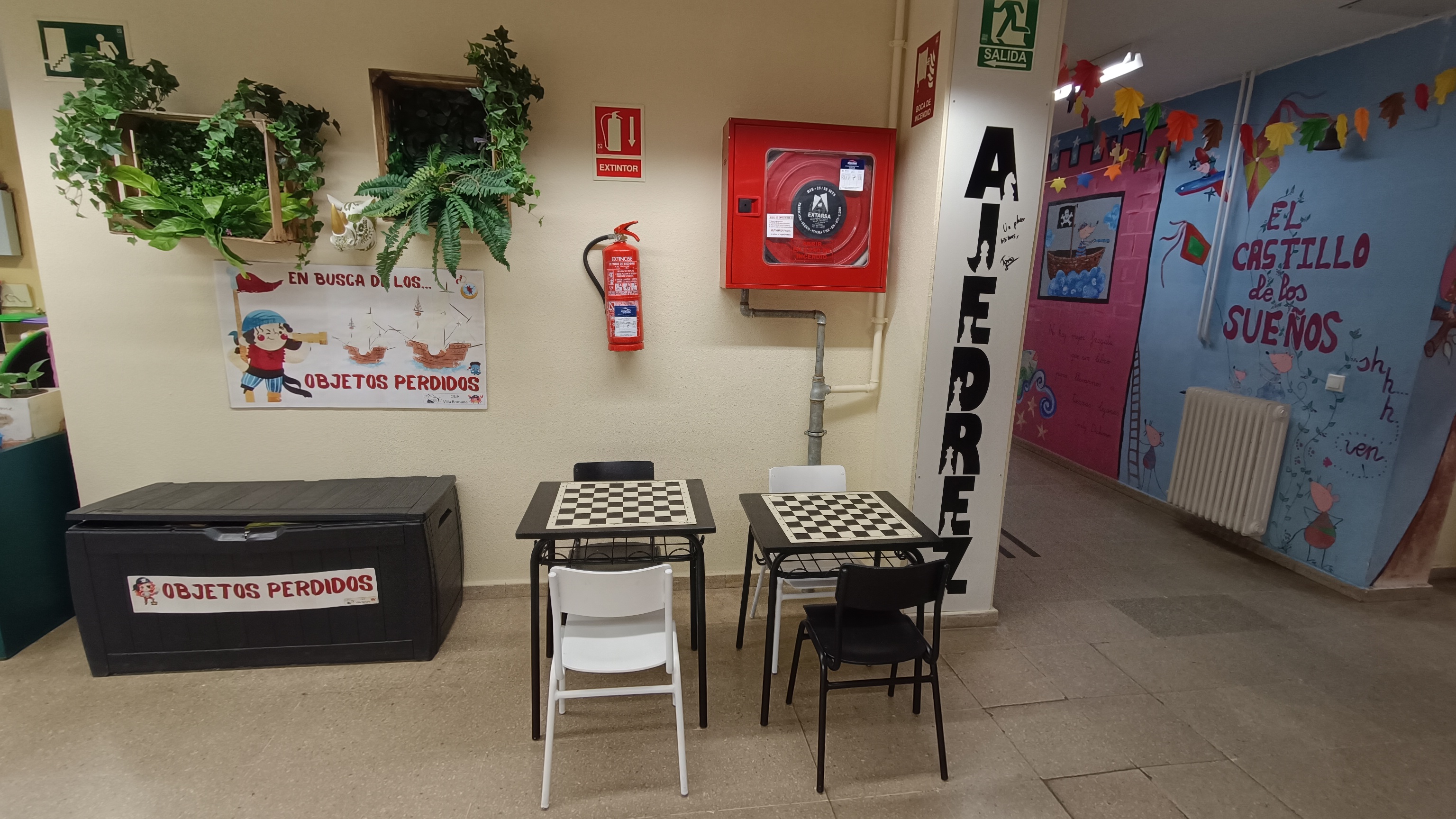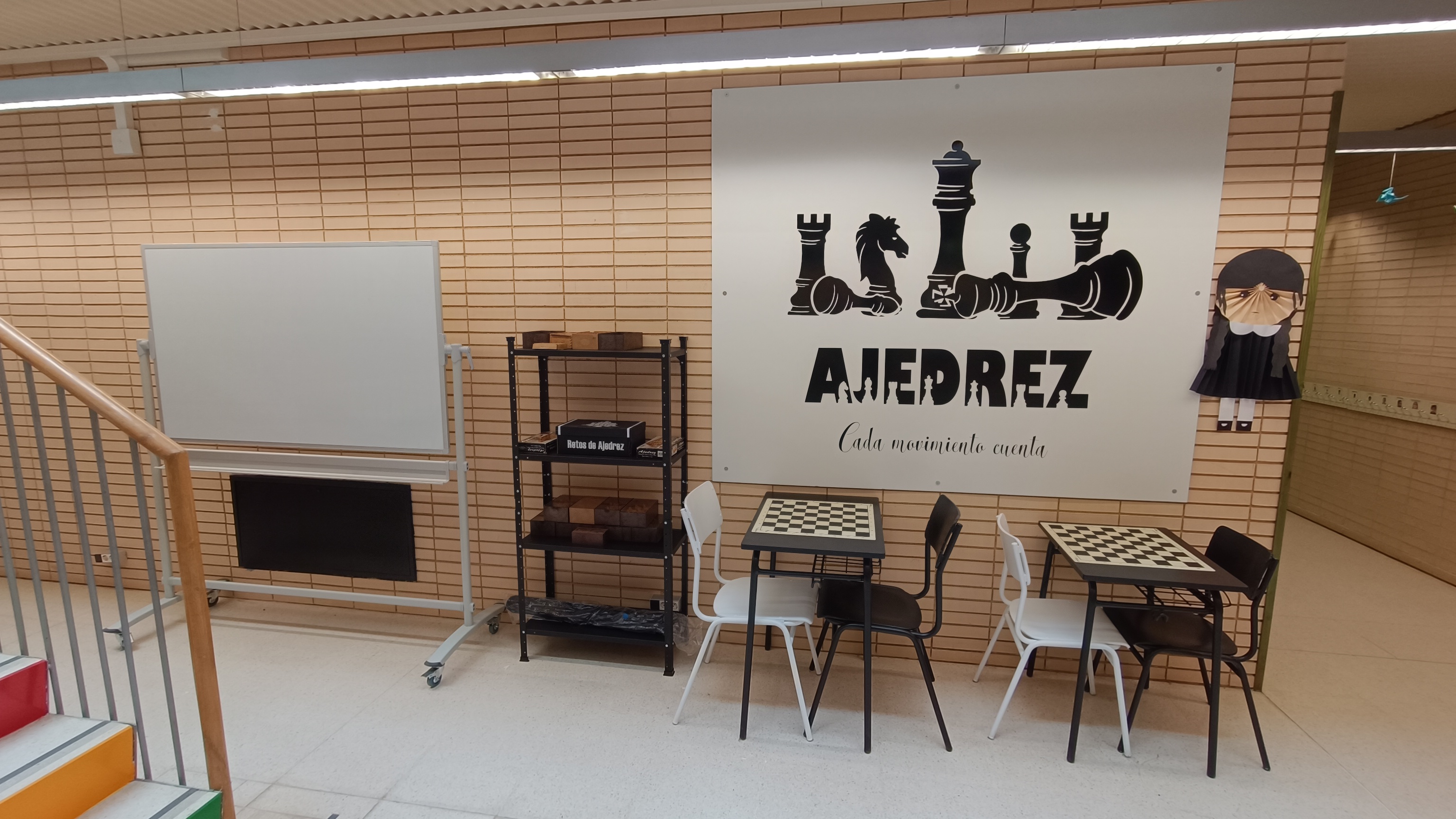 Contamos con tres rincones de ajedrez distribuidos por el centro y un aula con un ajedrez gigante, donde el alumnado disfruta aprendiendo y jugando en un entorno que estimula la mente y favorece la convivencia.