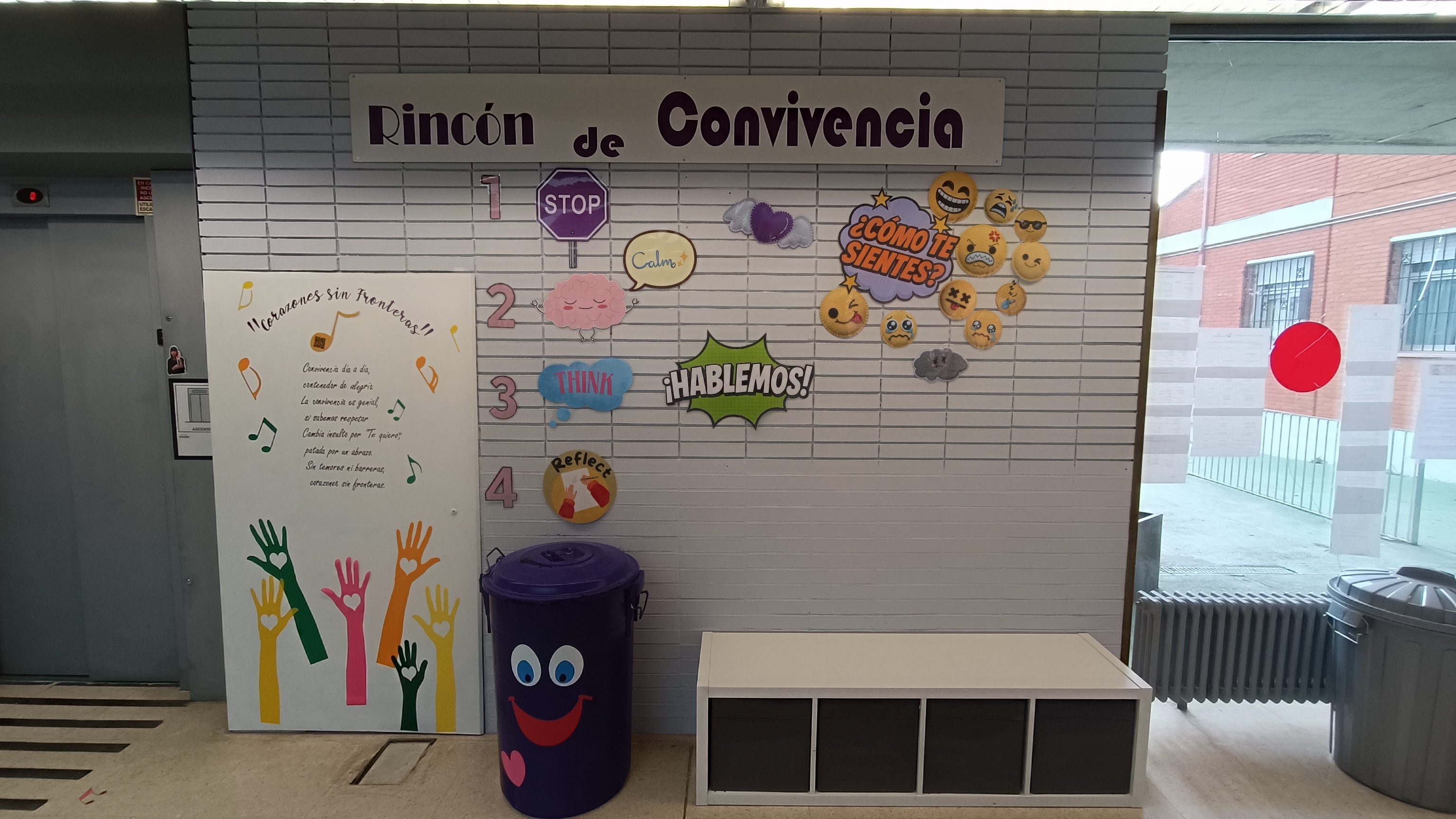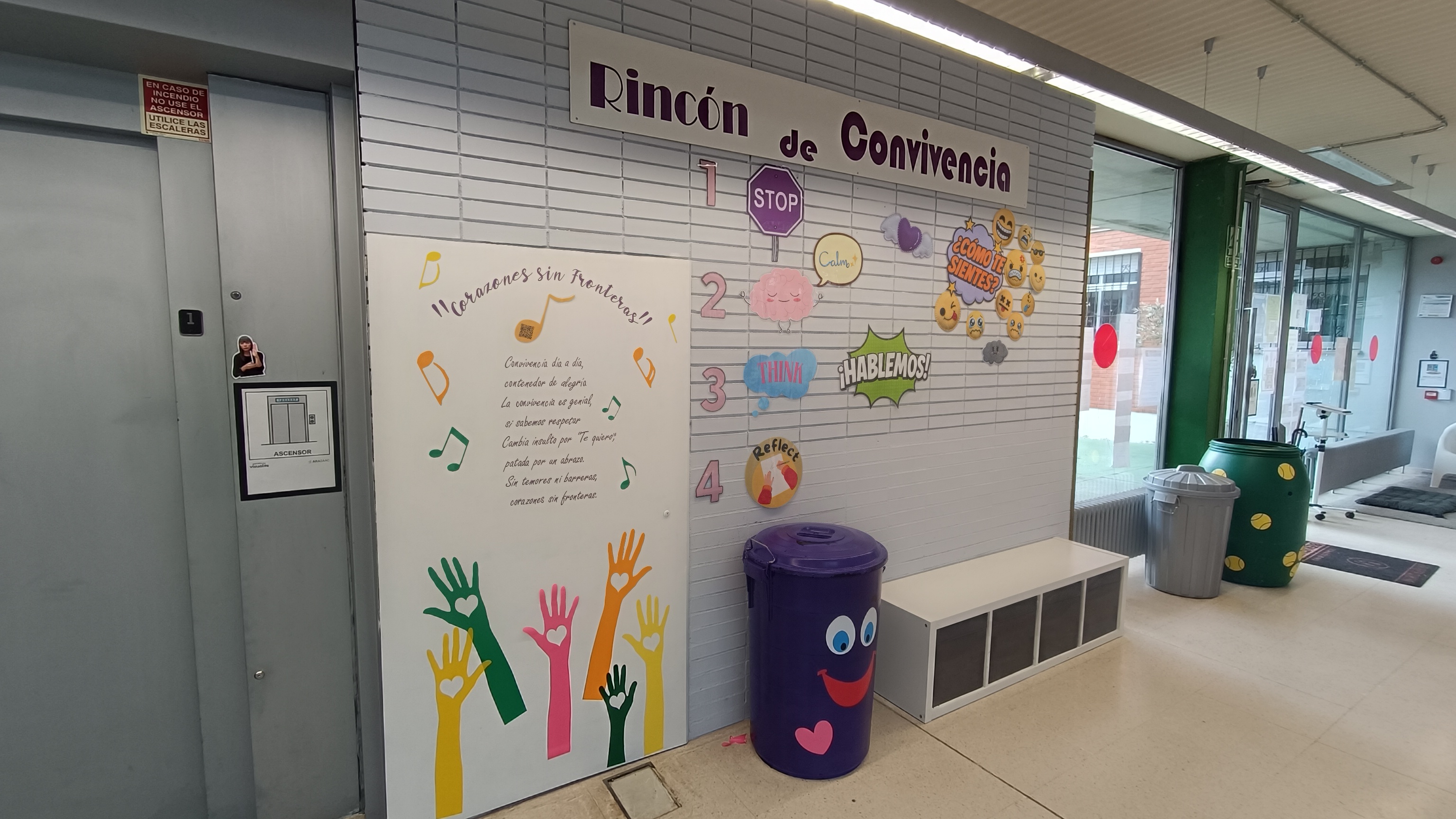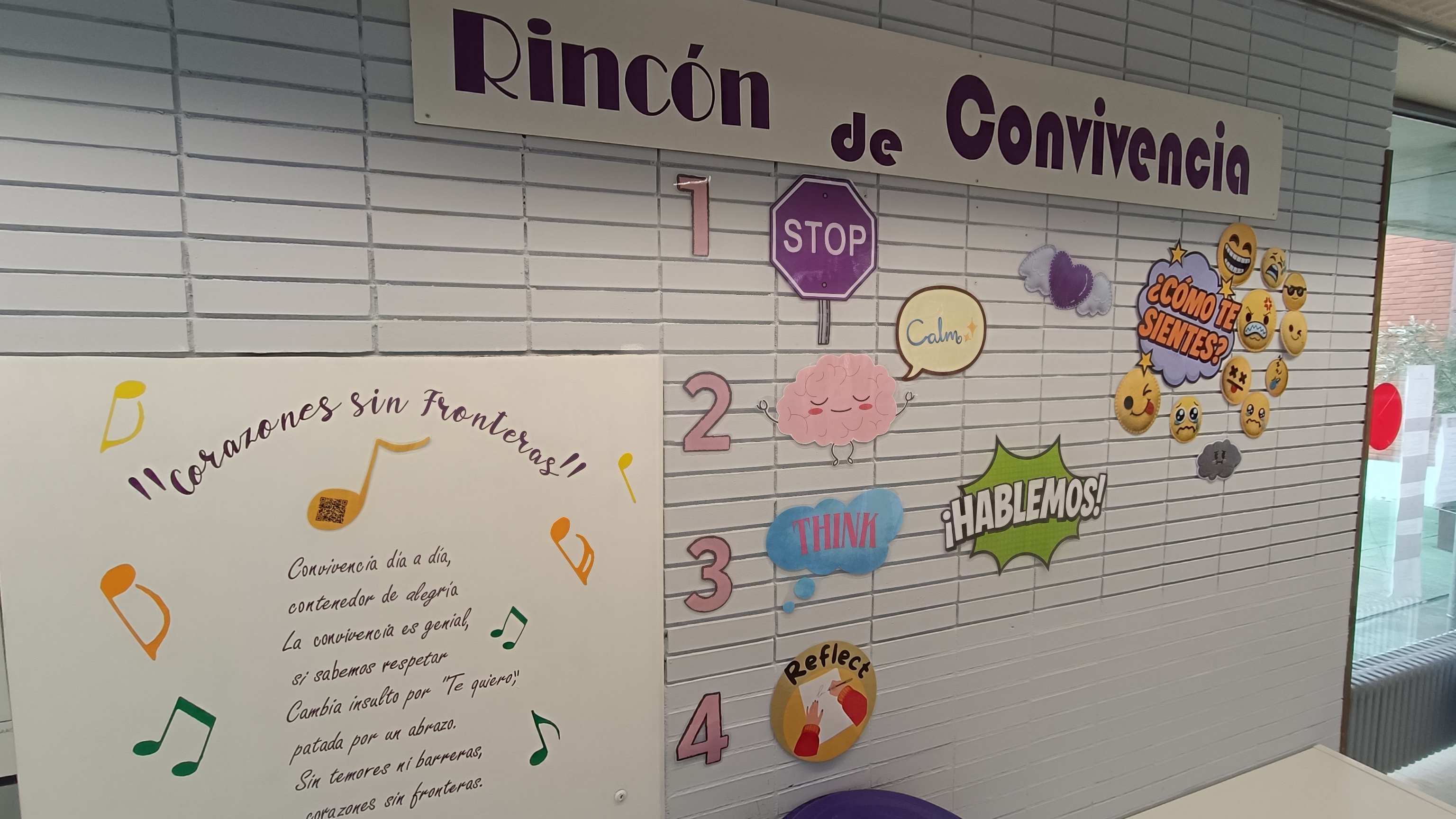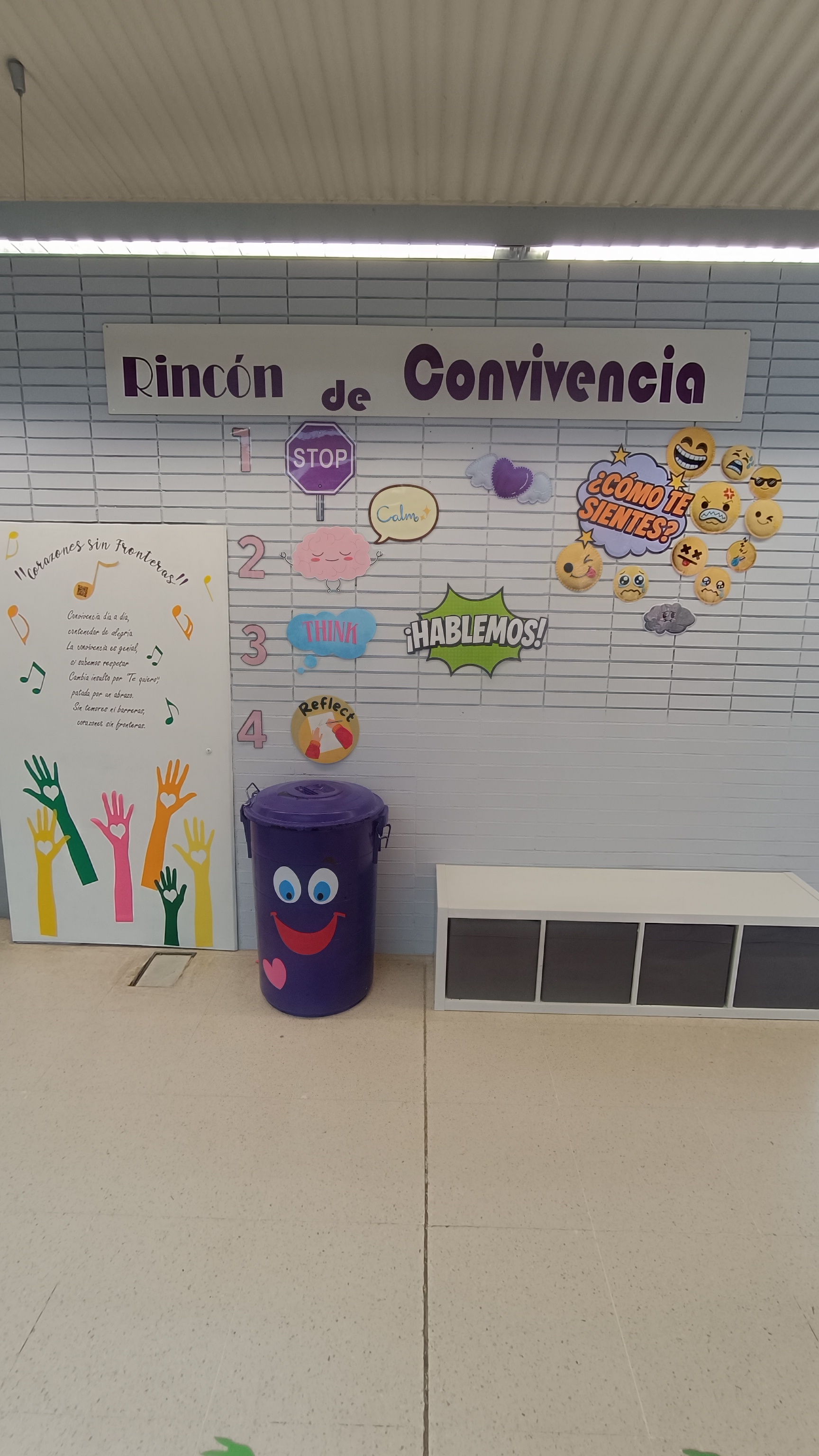 El Rincón de Convivencia es el espacio de referencia para la prevención de conflictos, la mediación y la resolución pacífica de situaciones de desacuerdo entre el alumnado. En este rincón se promueve el diálogo, la escucha y el respeto como herramientas fundamentales para una buena convivencia.