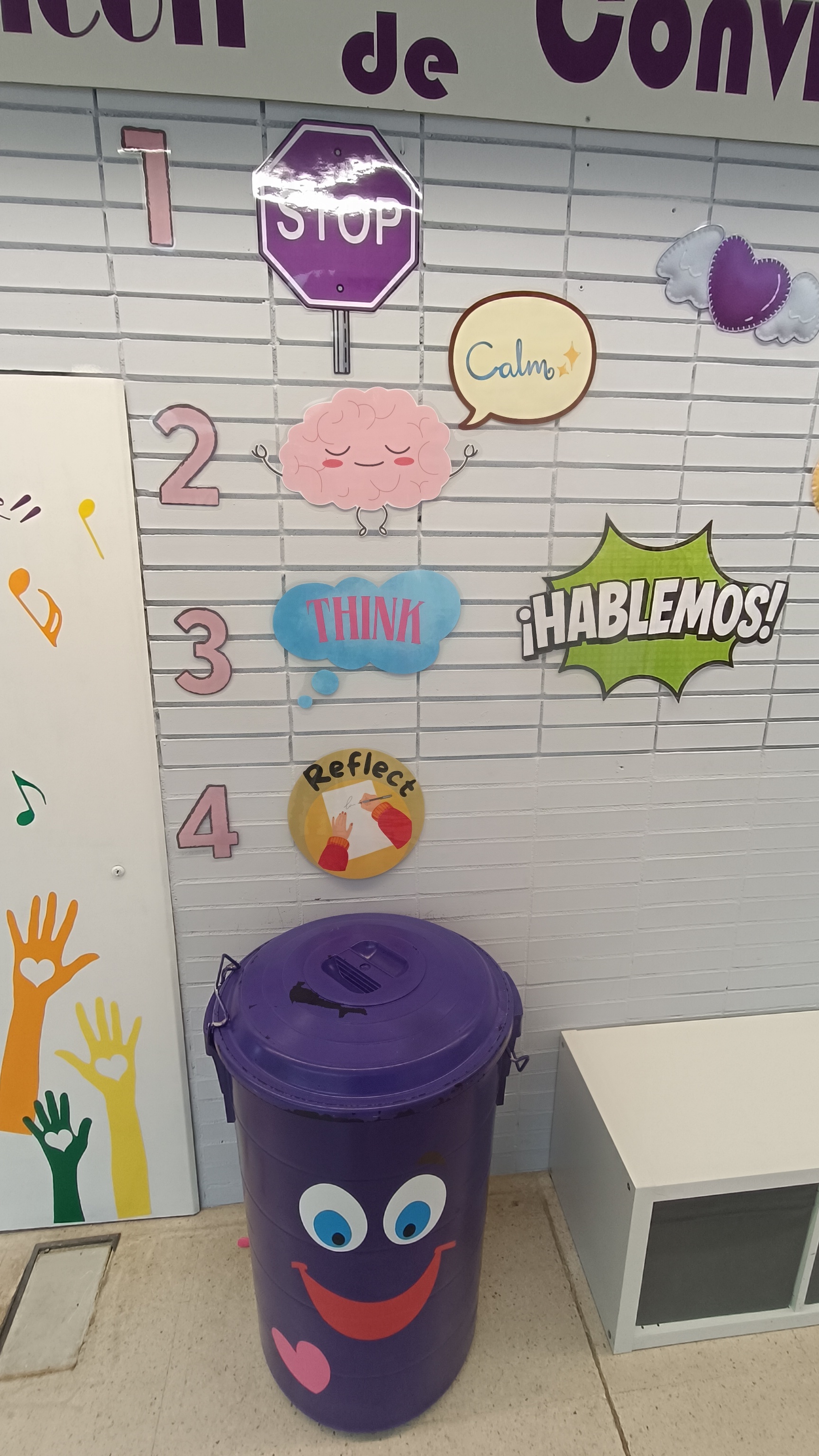 En él se encuentra el Contenedor Morado, un recurso simbólico de convivencia donde se “desechan” comportamientos inadecuados o malas acciones para transformarlos y reciclarlos en buenas palabras, actitudes positivas y acciones responsables. Este gesto ayuda al alumnado a reflexionar sobre sus actos y a comprender que siempre es posible mejorar y aprender.