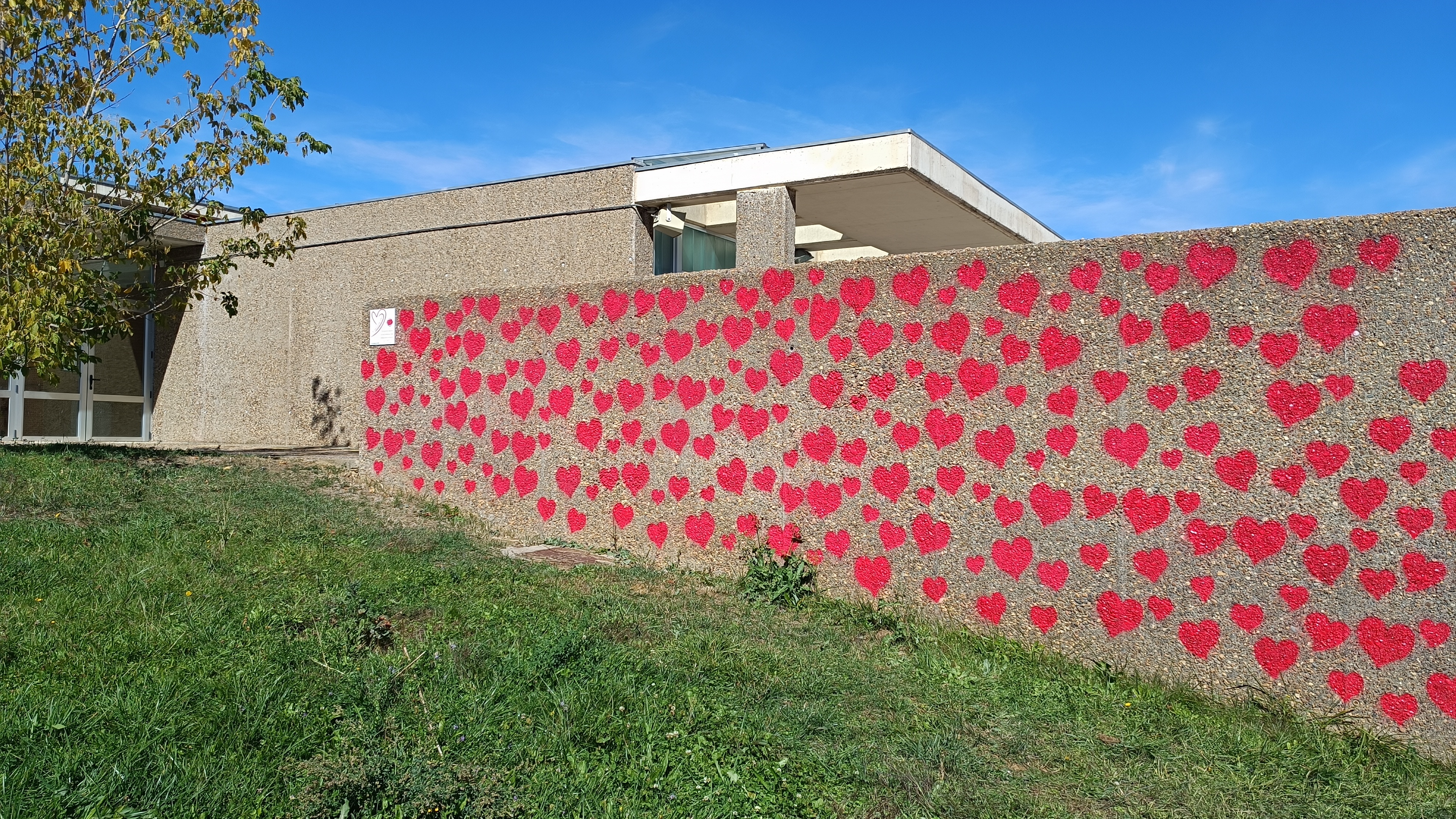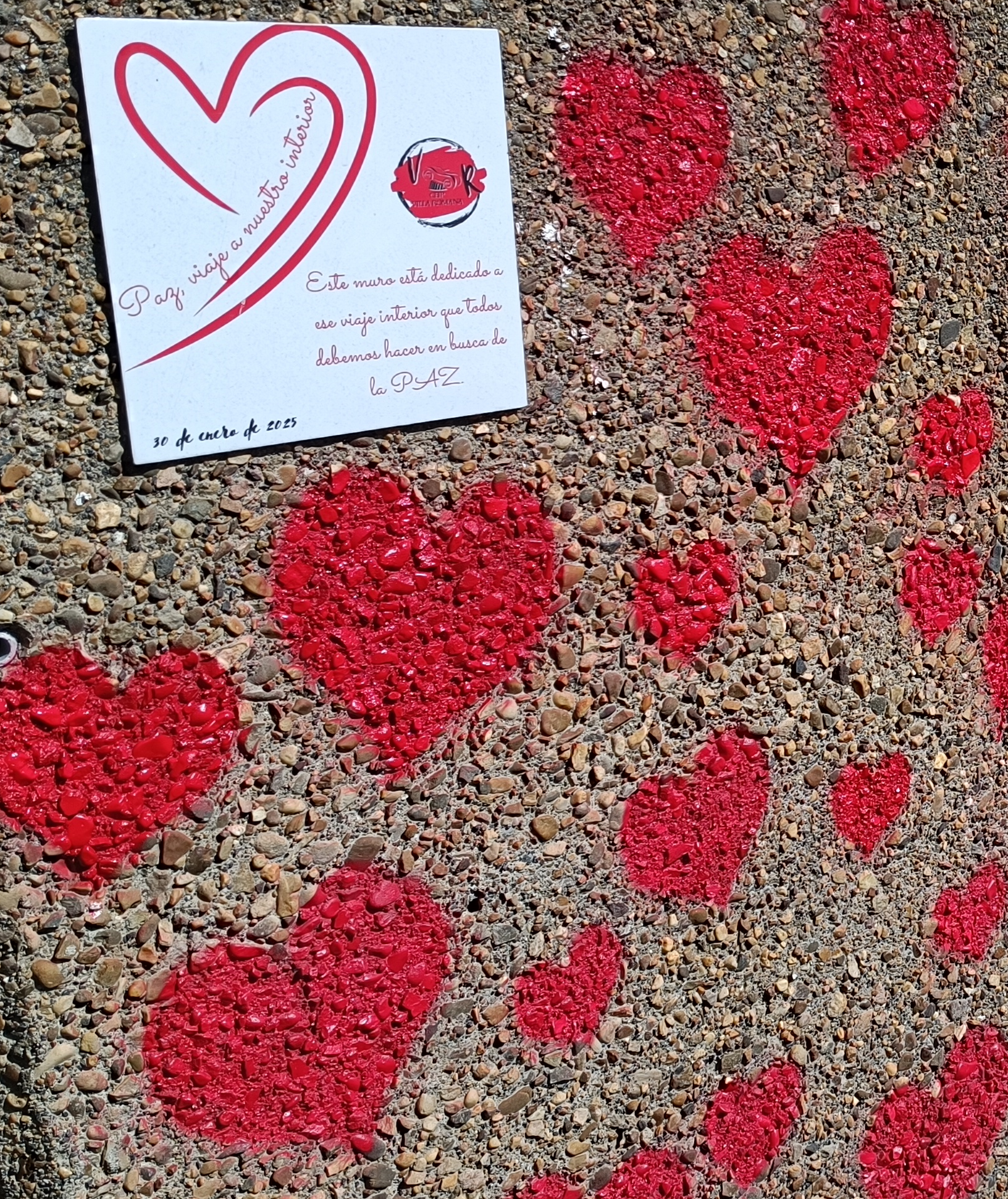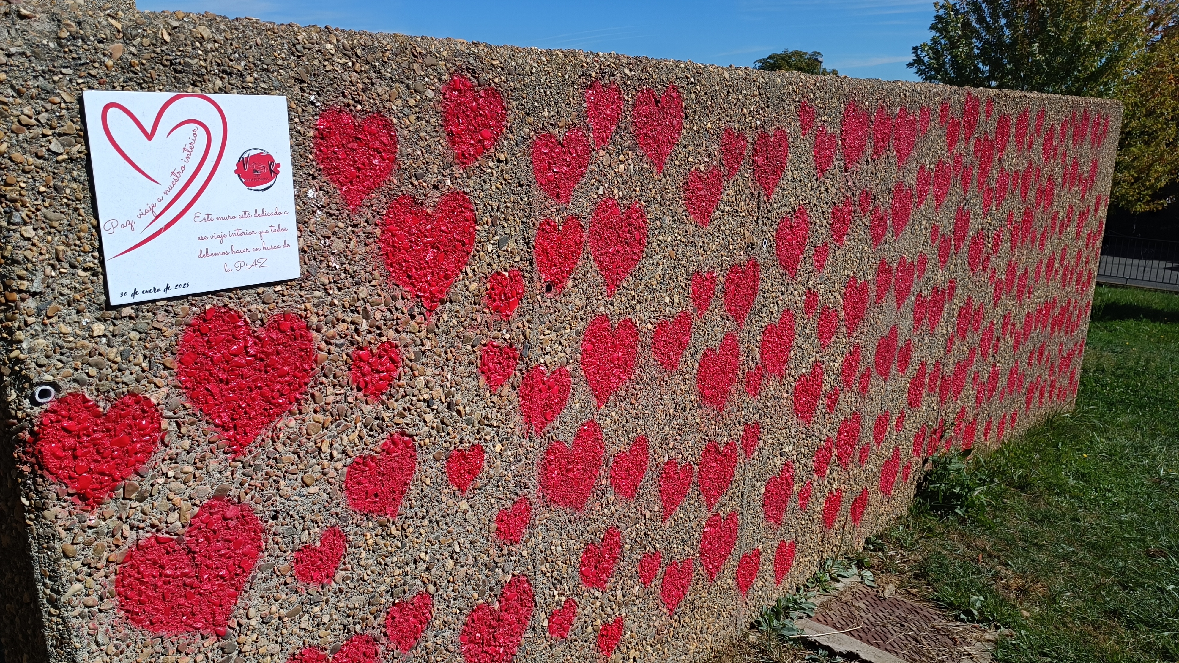 Este muro está inspirado en el muro conmemorativo de Londres dedicado a las víctimas del COVID y está compuesto por corazones, que simbolizan la memoria, la empatía, el cuidado y la esperanza.